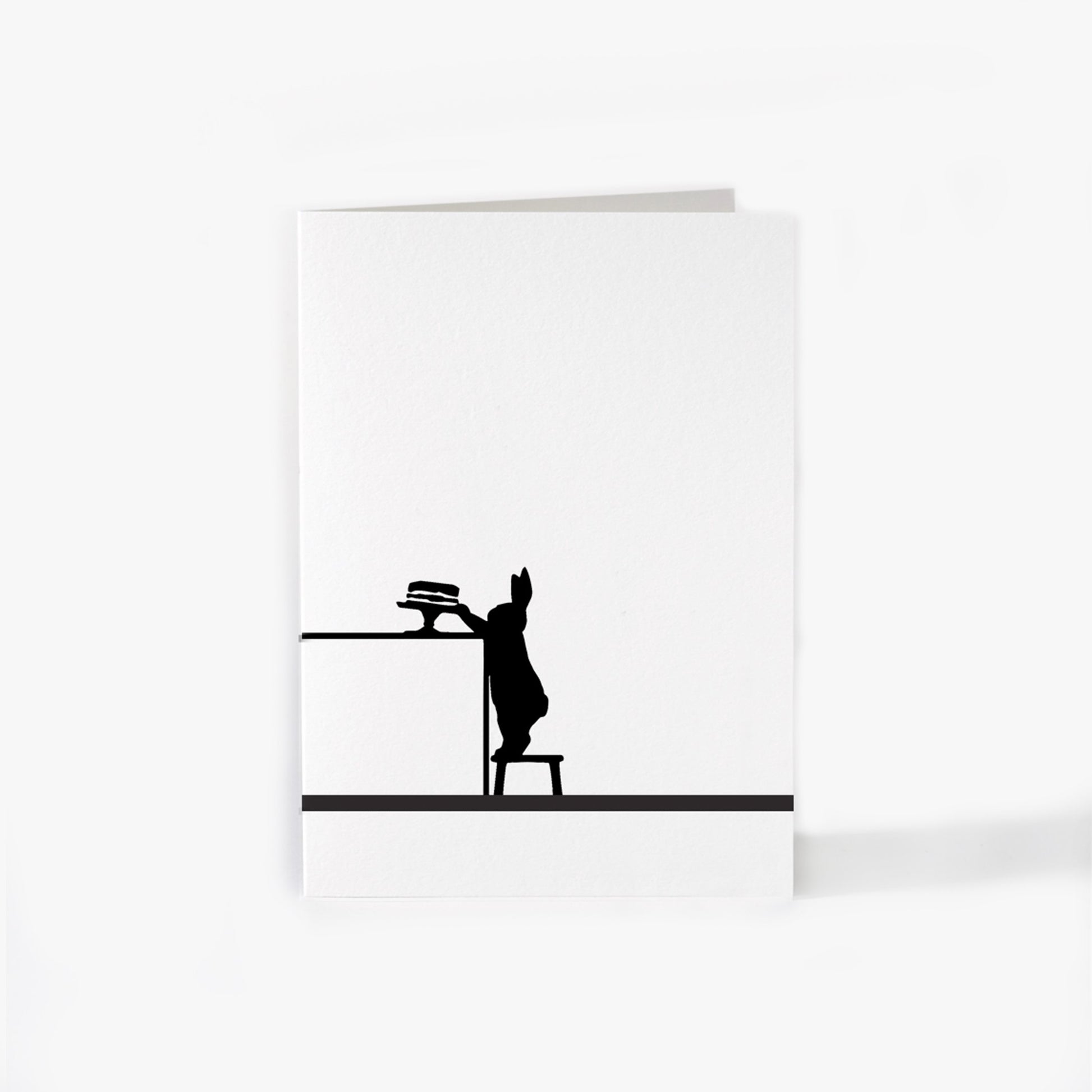 This card captures the unexpected and playful human-like moments from the life of a Rabbit - which won't fail to make you smile. This off-white greeting card is carefully made by hand and litho printed on thick matte paper. It comes with a brown kraft envelope and is blank on the inside which makes it perfect for every occasion. Designed by HAM. ade in England.