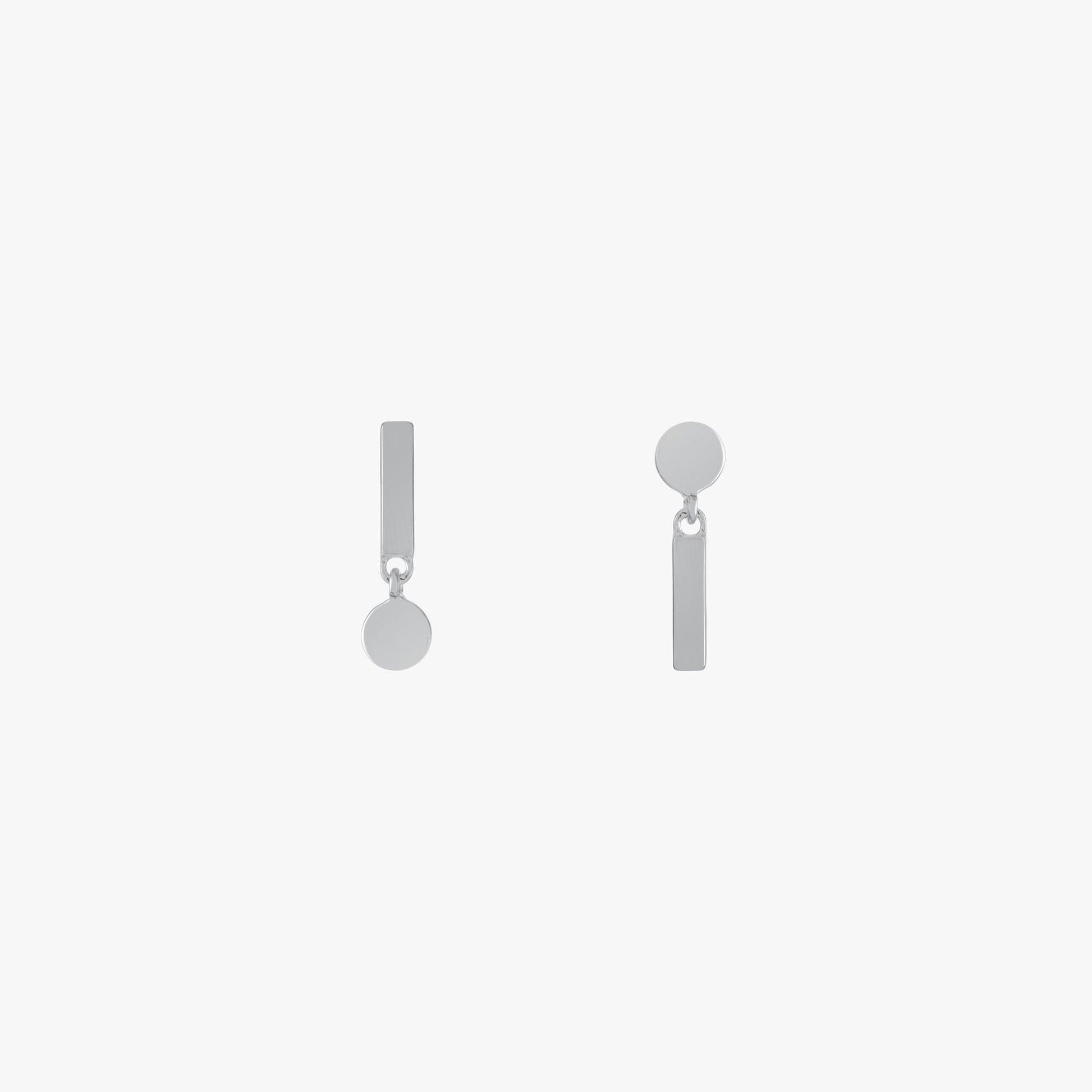 These mismatched geometric earrings have been artfully crafted using the brand's signature hand-carving wax technique. Cast from silver, one is shaped like a simple circle and rectangle drop while the other is reversed with a drop and a circle at the end. This contrasting pair adds a unique sophisticated edge to your ears. The two shapes hang independently of each other so catch the light beautifully in motion with your movements. Designed in London and come in a pristine white Buff branded jewellery gift box, ready for gifting.