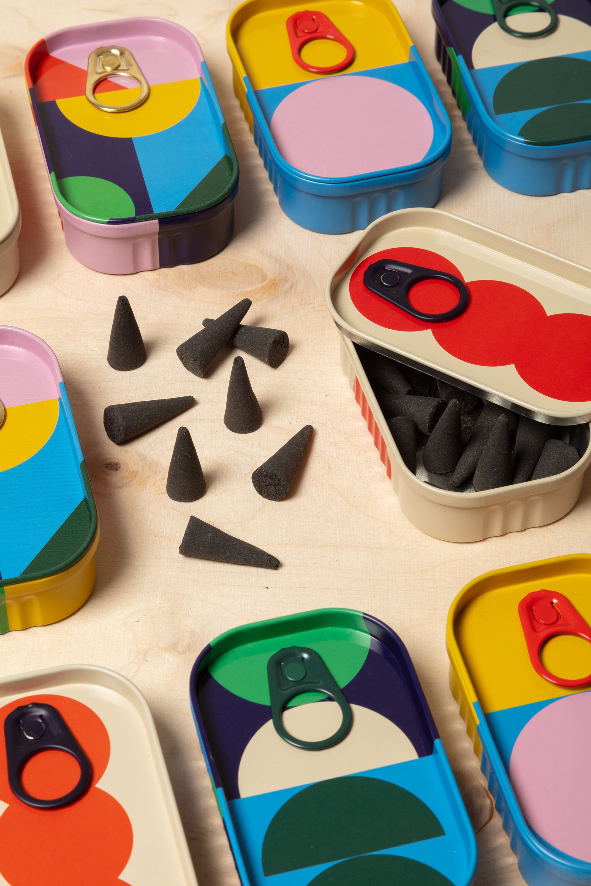 Burning Advise: Place a single cone on an insulated burner or the upturned lid of this tin. Ensure burner is on a fire-resistant surface. Light the tip of the cone until a small flame is established. Once the tip is glowing, blow the flame out. To extinguish, carefully dip the tip in water.