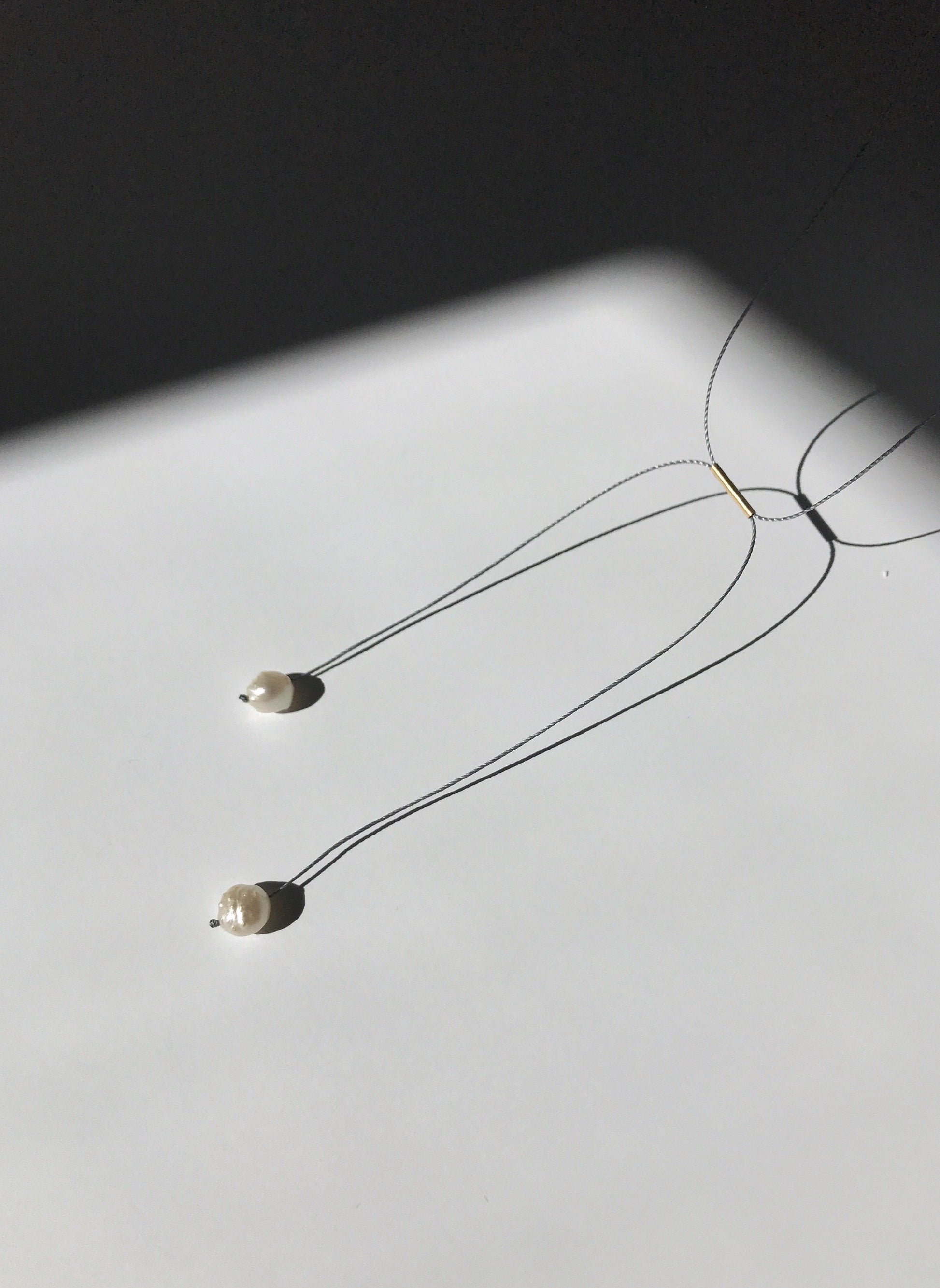 This understated and elegant necklace is handmade from two real freshwater rosebud pearls featuring gold filled elements and durable colourful, adjustable string for comfort. The string moves freely through the tube allowing you to wear the necklace in different ways and different lengths. Wear it as your everyday signature over a T-shirt or a shirt. Mix and match with the coordinating ring and bracelet. Designed in Berkeley, California by Anchovy. Comes in a gift box.